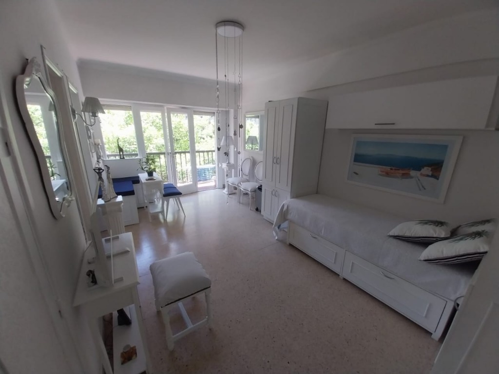 Amplio living con balcón saliente y vista panorámica de la ciudad y vista lateral al mar Comedor separado totalmente externo Máster suite con vestidor, escritorio y baño privado Segundo dormitorio con placard y muy luminoso Cocina de generosos dimensiones totalmente equipada Baño completo El departamento se encuentra totalmente reciclado a nuevo y cuenta con planos de todo el trabajo Sistema de calefacción por radiadores Se entrega totalmente amoblado y decorado