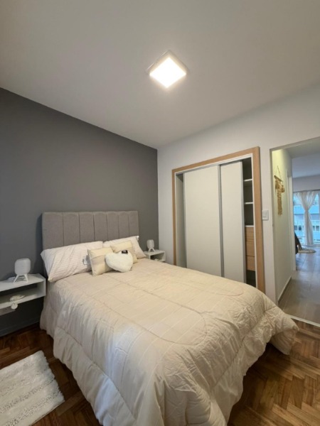 El baño completo cuenta con pediluvio, y el dormitorio, orientado al contra frente, dispone de placard empotrado y una excelente entrada de luz.