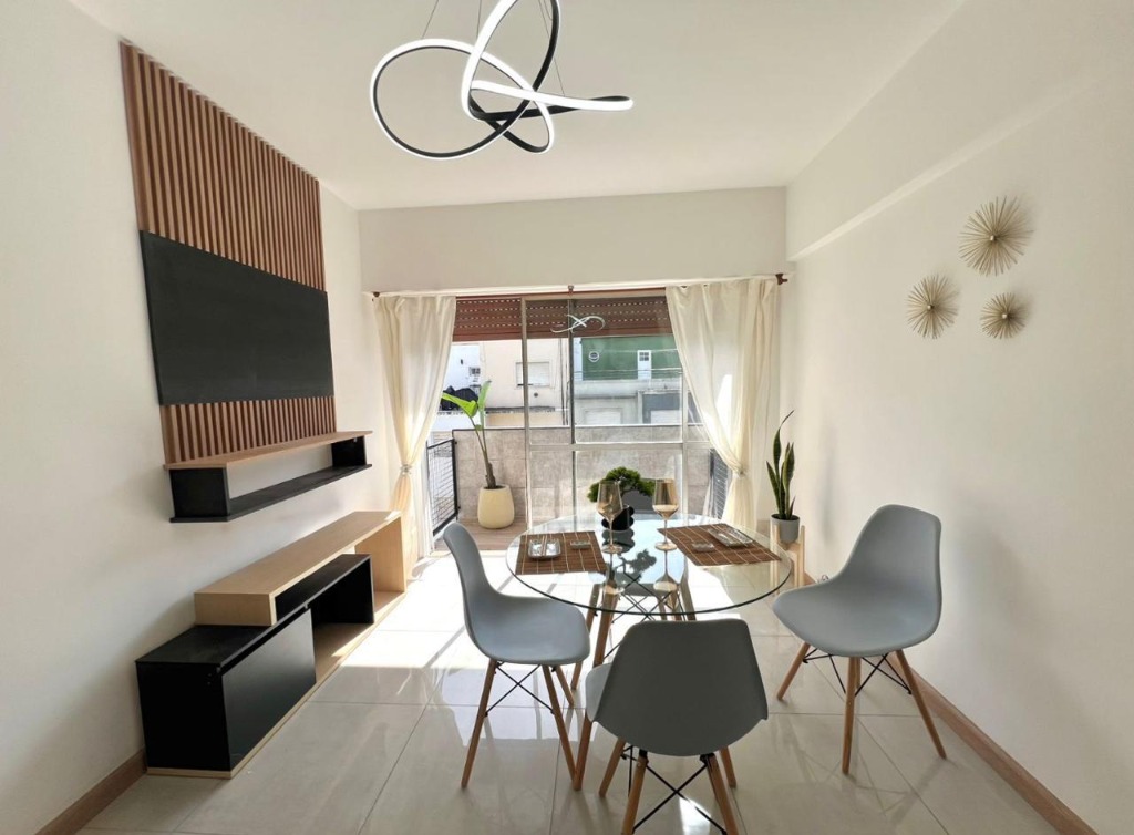 Al ingresar, te recibe un ambiente amplio y luminoso con gran ventanal al frente y salida al balcón saliente. La cocina, también al frente, cuenta con ventilación natural y espacio para lavarropas. Cada detalle fue pensado para ofrecer funcionalidad y calidad: aberturas de aluminio con DVH, pisos de porcelanato de primera calidad, placard a medida, calefacción por split y todo el mobiliario y equipamiento a estrenar.