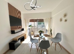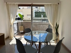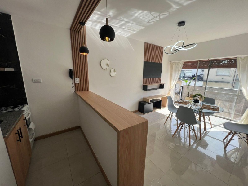 Al ingresar te recibe un living comedor amplio y muy luminoso, con pisos de porcelanato y salida a un balcón saliente orientado a la vereda de sol. La cocina se encuentra integrada, equipada con barra desayunadora y mobiliario a medida.