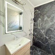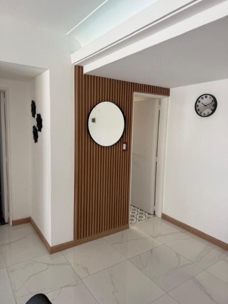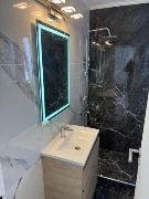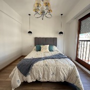 El dormitorio, amplio y soleado, dispone de placard a medida; mientras que el baño completo presenta revestimientos en porcelanato y moderna ducha con mampara.