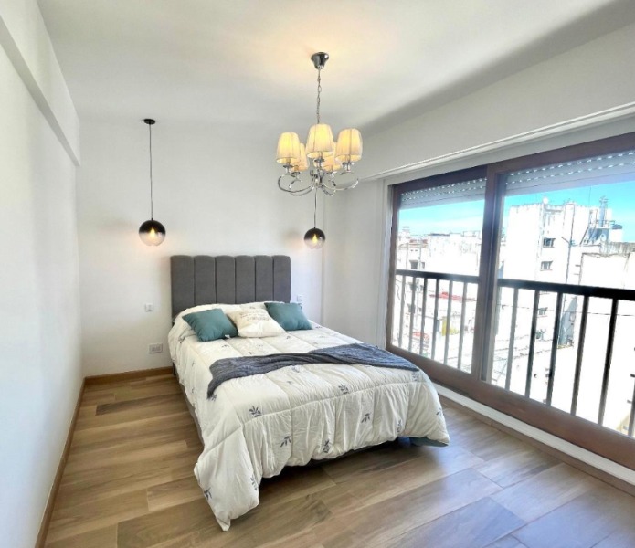 Al ingresar, te recibe un luminoso living comedor, con gran ventanal y balcón francés que ofrecen una vista abierta a la ciudad. La cocina está separada, cuenta con ventilación natural y mobiliario realizado a medida, pensada para aprovechar cada espacio.