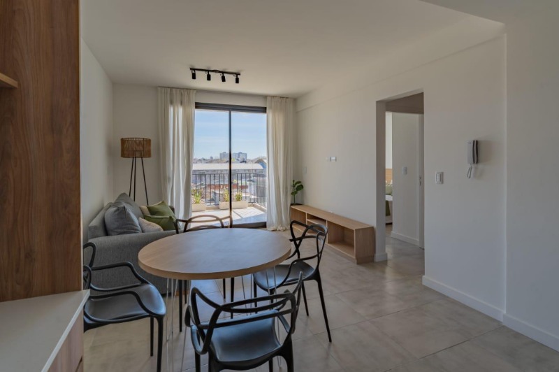 Al ingresar te recibe un luminoso living comedor con salida al balcón corrido de 9 m², equipado con parrilla propia, ideal para disfrutar con familia o amigos al aire libre. La cocina integrada se conecta de manera práctica con el espacio principal y cuenta con lugar para lavarropas. El dormitorio también da a la calle y dispone de placard empotrado, mientras que el baño es completo con ducha.