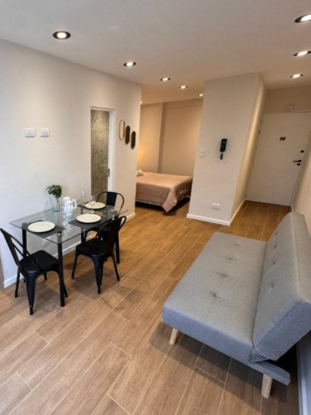 Al ingresar te recibe el sector de living–comedor, con salida directa al patio. Este espacio se entrega equipado con mesa y sillas, futón y calefacción por tiro balanceado, logrando un ambiente cálido y bien distribuido. El sector de dormitorio cuenta con placard empotrado y sommier de dos plazas con respaldo, aportando comodidad y orden.