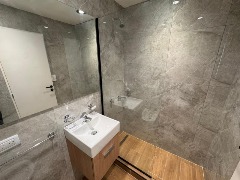 El baño completo, reciclado y con ducha y mampara, acompaña la propuesta con un estilo simple y funcional.