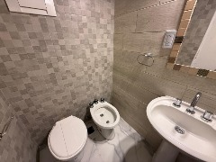 - Baño principal completo con mampara corrediza de vidrio templado y espejo LED.